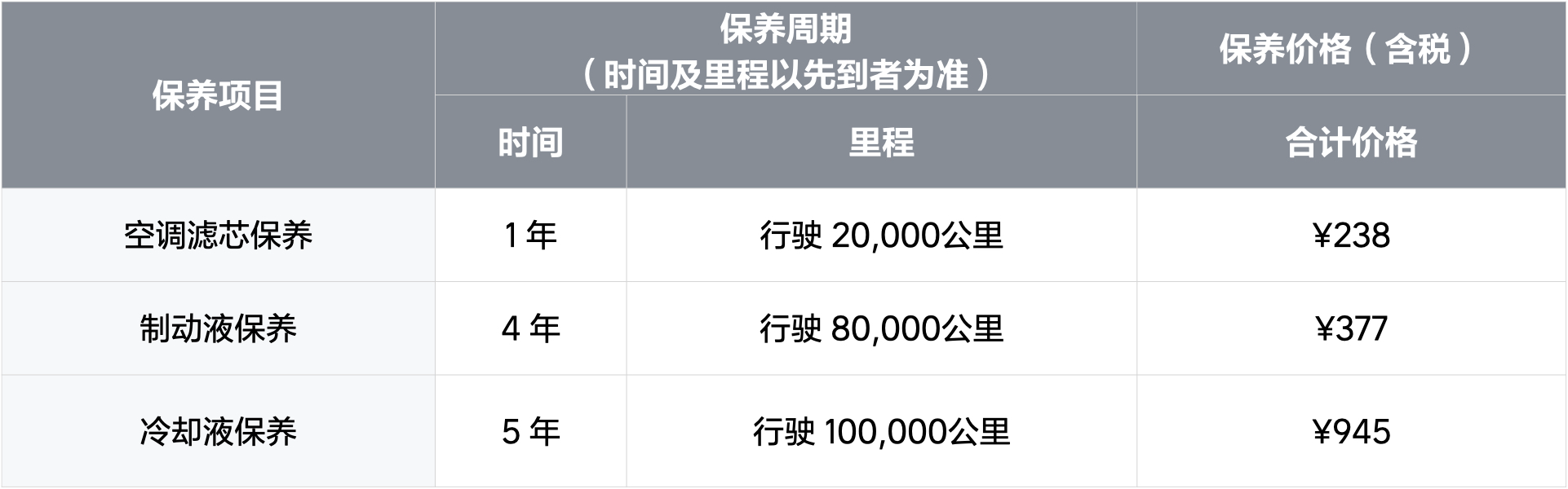 *车辆因款型、配置不同,保养项目、周期及零售价格可能存在差异,详细保养信息以官方服务门店确认为准。