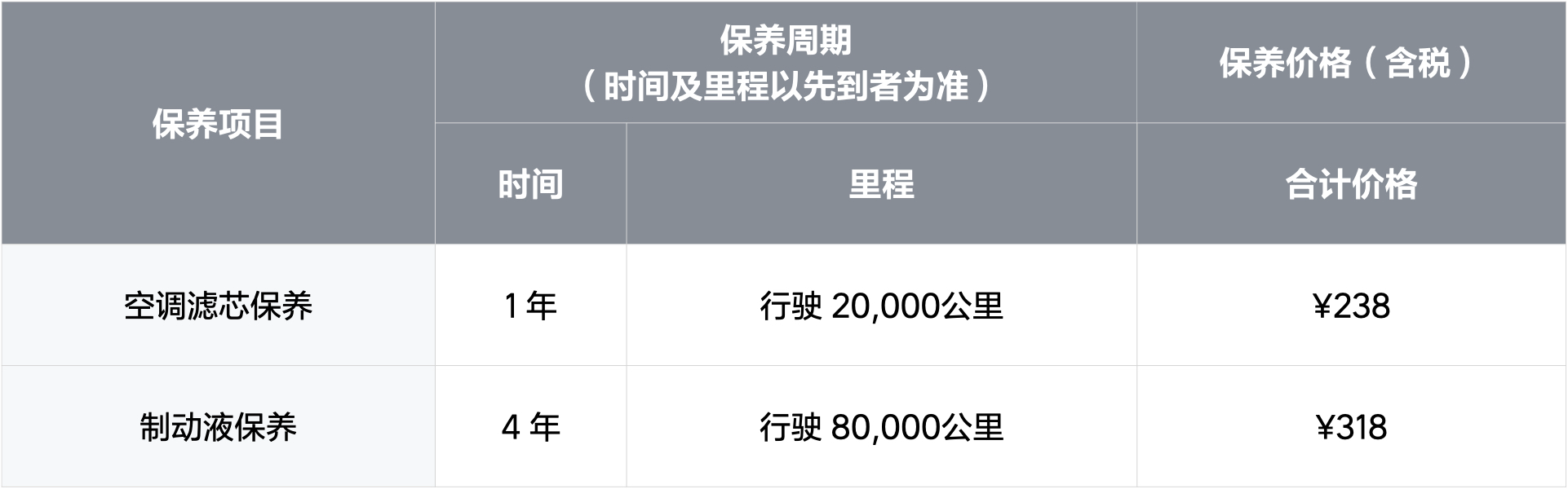 *车辆因款型、配置不同,保养项目、周期及零售价格可能存在差异,详细保养信息以官方服务门店确认为准。