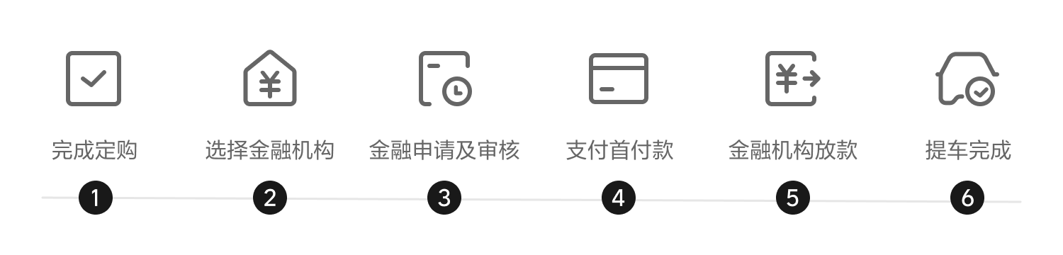 *定购时选择的金融方案仅为试算方案,待订单生效后系统将自动为您开启金融申请,您可以重新选择合适的金融服务机构选装金融方案。